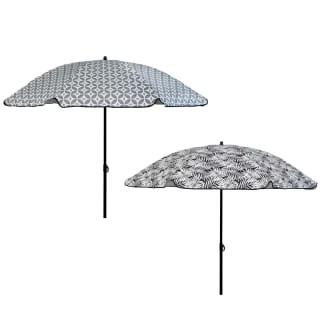 Relax in style under this printed parasol. Powder coated steel frame. Folds away for easy storage. Water repellent.