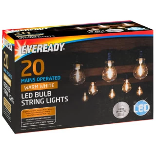 Eveready Mains Powered LED Bulb String Lights 20pk – Warm White.